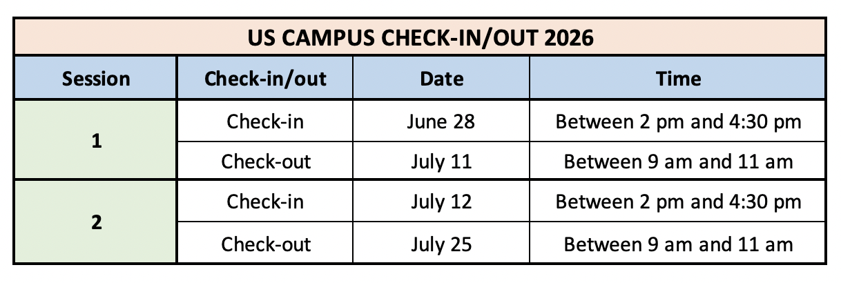 The contact information of the staff in charge of checking in/out the student and the meeting point information will be sent closer to the beginning of the program.