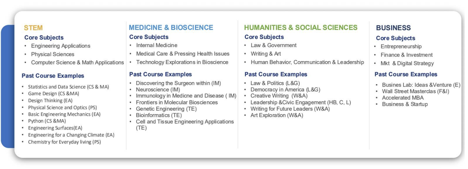Students will be able to choose between programs that offer intensive single-subject courses; programs by track (specific area of interest) such as STEM, Bioscience & Humanities or Full Exploratory