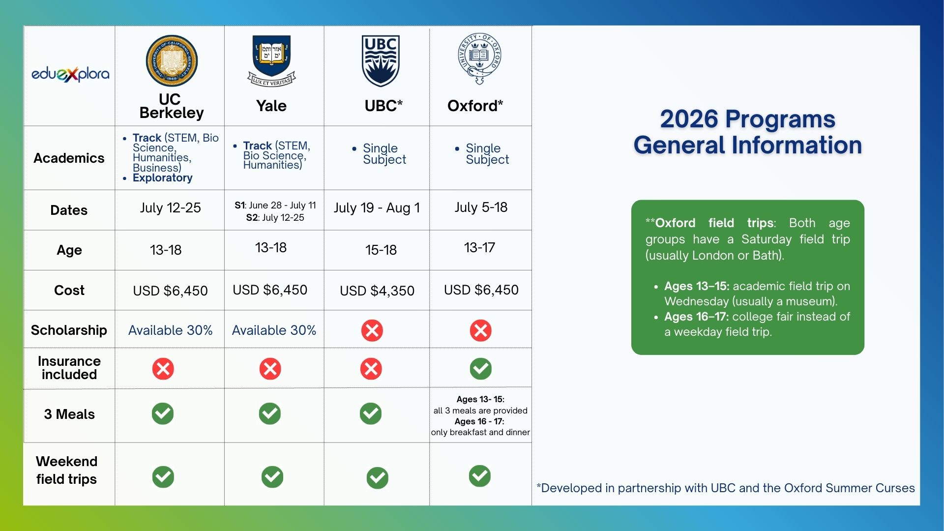 2026 International Academic Programs Overview