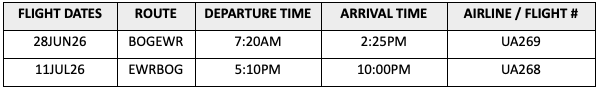 Itinerary: Bogota (BOG)-NewArk(EWR)