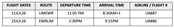 - For students traveling both ways on the group flight (option 1), Eduexplora will be collecting the funds to facilitate the process and be able to hold the reservation for the group until March 16th, 2026.